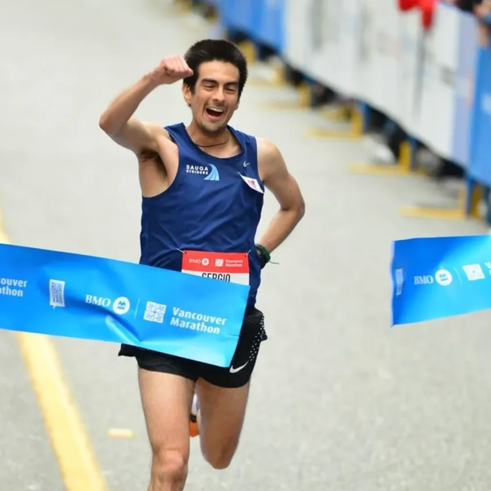 Sergio competes at an elite level and has represented Team Canada internationally in cross-country and track. Since moving into marathon racing in 2022, he has quickly become one of Canada’s top performers. He placed 3rd Canadian and 9th overall at the 2023 TCS Toronto Waterfront Marathon, following a strong 2:18:04 performance at the same event in 2022. In May 2024, he won the Vancouver BMO International Marathon, further establishing himself as a leading marathoner.